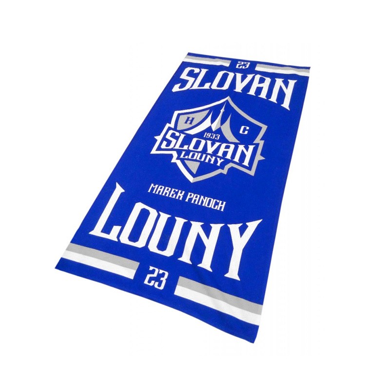 Ručník HC Slovan Louny. Rozměr 50x100 cm. Možnost vytisknout na ručník číslo a jméno hráče.