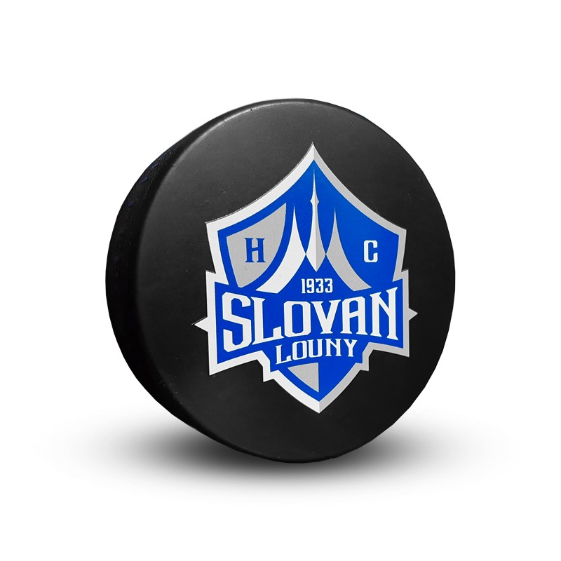 Hokejový kotouč s tištěným znakem HC Slovan Louny. Oficiální velikost.